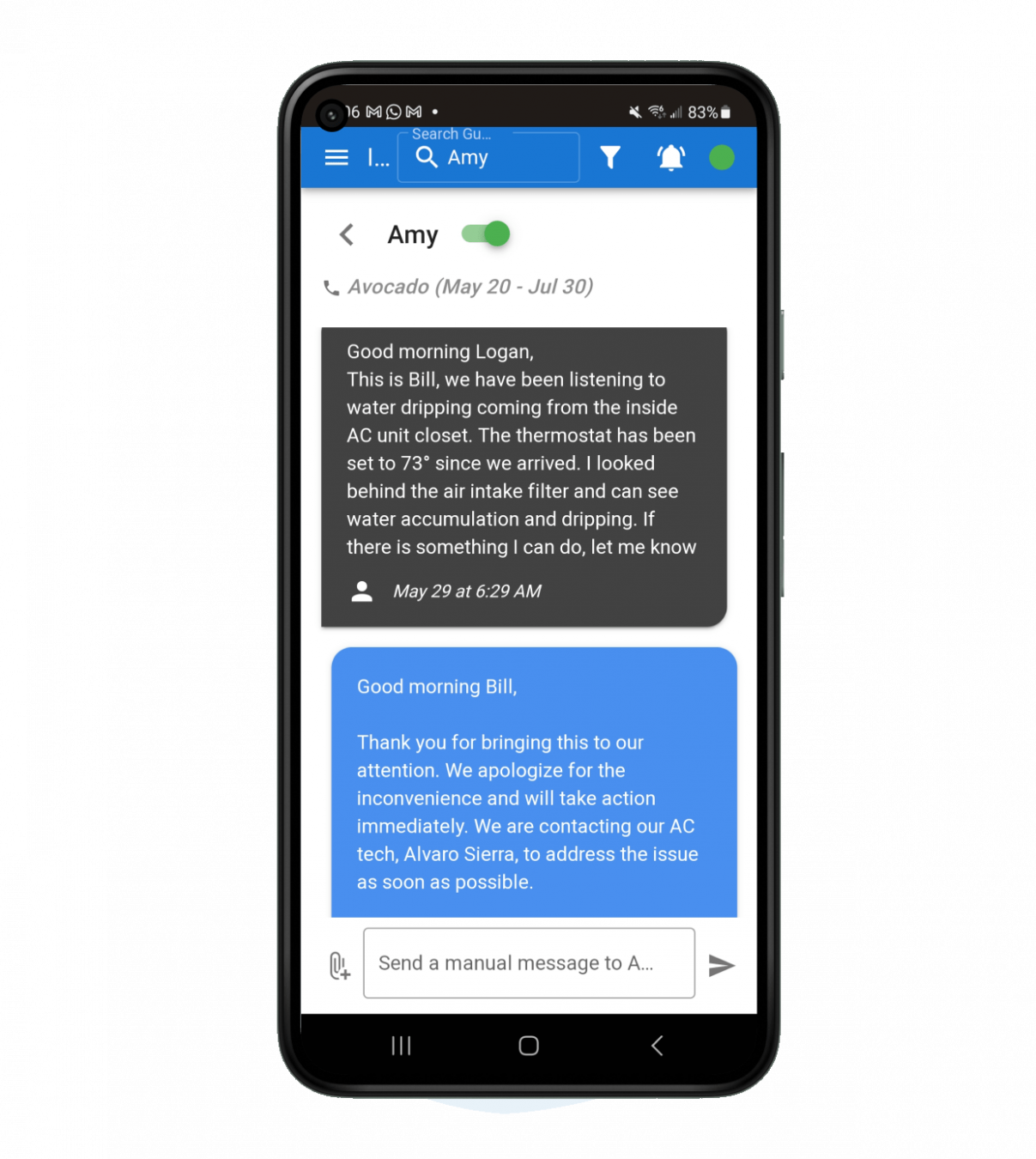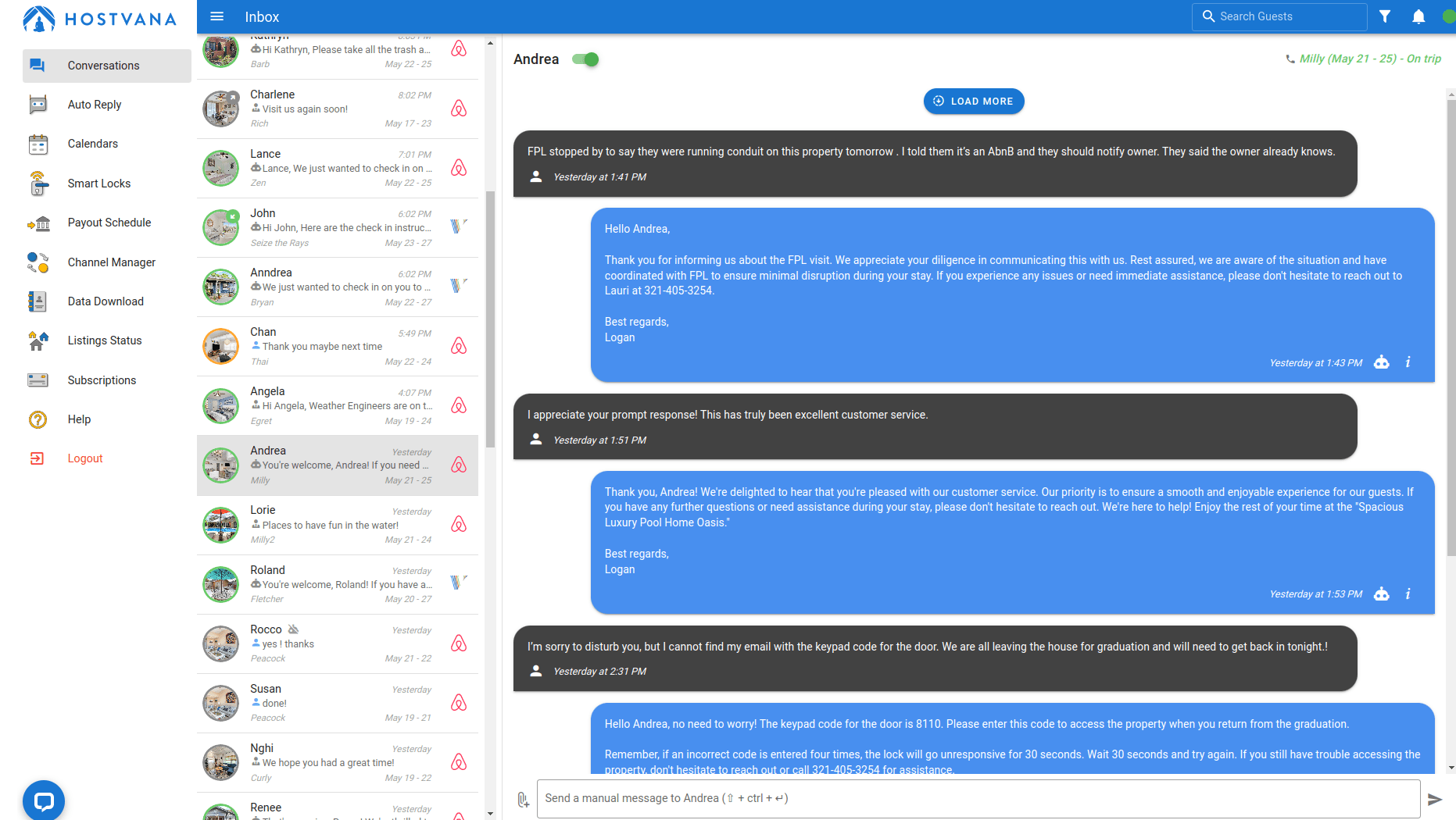 Beyond mere communication, Hostvana intelligently performs actions like forwarding issues to contractors or filtering troublesome guests, streamlining interactions and eliminating you as the middleman!