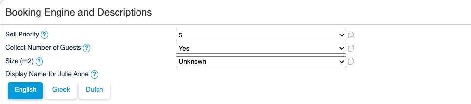 The SELL PRIORITY sets out the order in which Rooms are displayed on your Website.