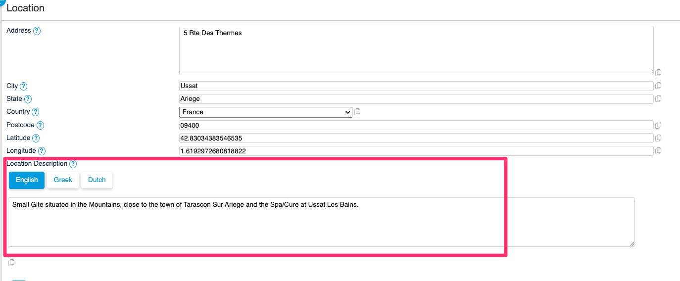 You also see in the Graphic the language tags, if you are using a multilingual site you will need to enter the Content in English and then in the other languages, the above example shows Greek and Dutch as the additional languages.