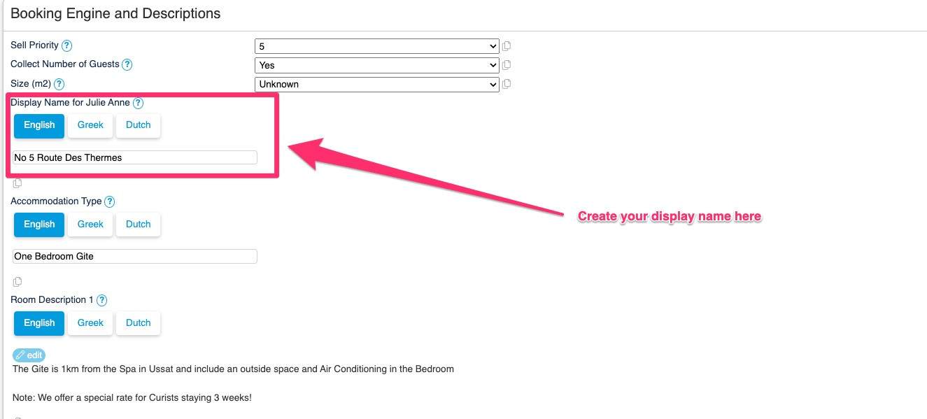 Click Here to create a Display name scroll down to BOOKING ENGINE AND DESCRIPTIONS