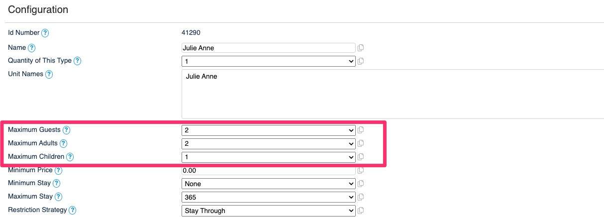 - Set the Maximum Number of Adults (DO NOT use the "Use Guests" option in the drop down, always enter a number)